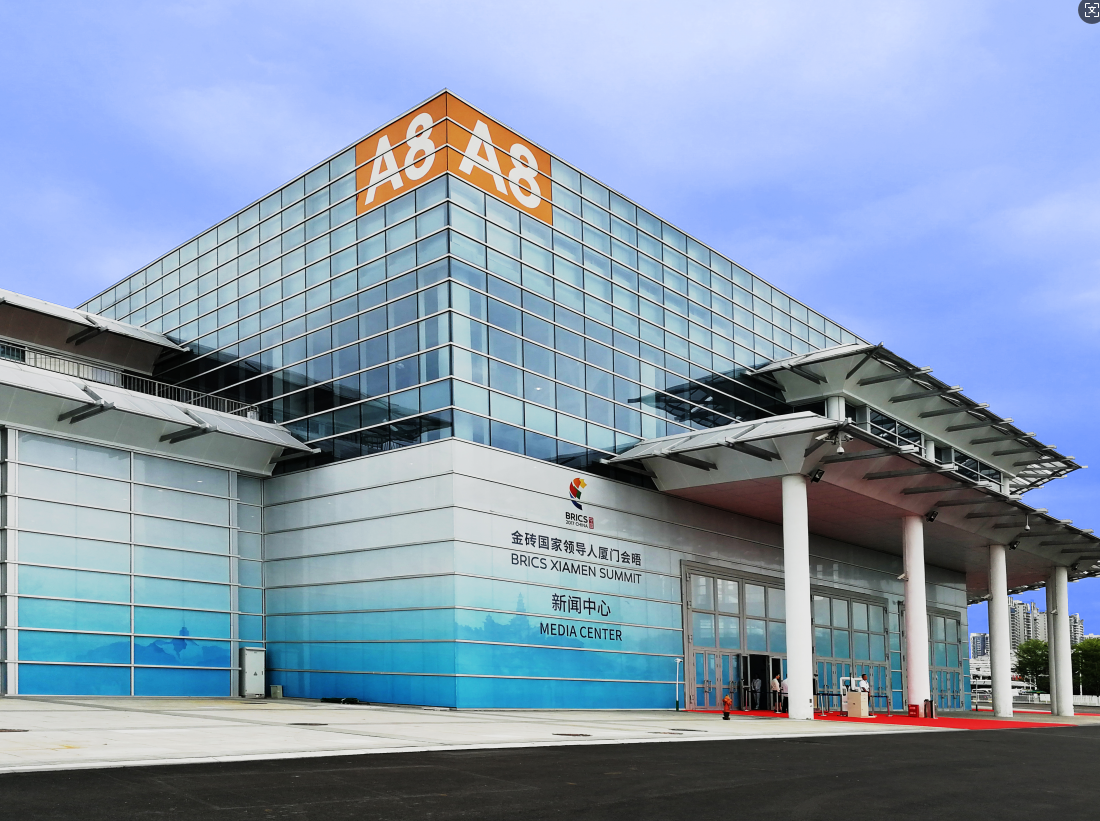 厦门金砖会晤场馆位于厦门市国际会议中心和会展中心。设计以绿色、可循环为主题,要求在不破化原有建筑的基础上新建馆中馆等功能区。 总建设体量30000平米,汉尔姆以总承包商身份承接其新闻中心场馆建设工程,用工业4.0的方法,50天建造完成,15天全部拆除。