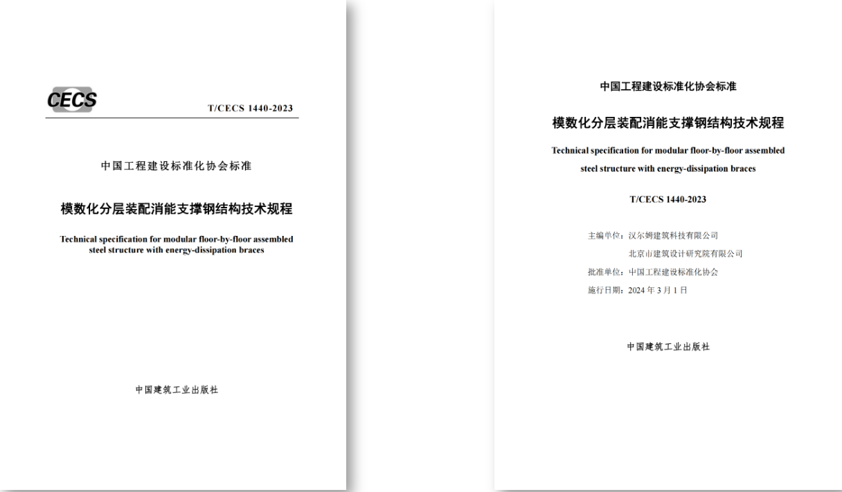 汉尔姆作为第一主编单位编制的CECS标准《模数化分层装配消能支撑钢框架结构技术规程》,经广泛调查研究,认真总结实践经验,深入研究与对比国内外相关标准,并在广泛征求意见的基础上,制定本规程。内容科学合理、可操作性强,与现行相关标准相协调,规程的编制总体达到国际先进水平。自2024年3月1日起施行。