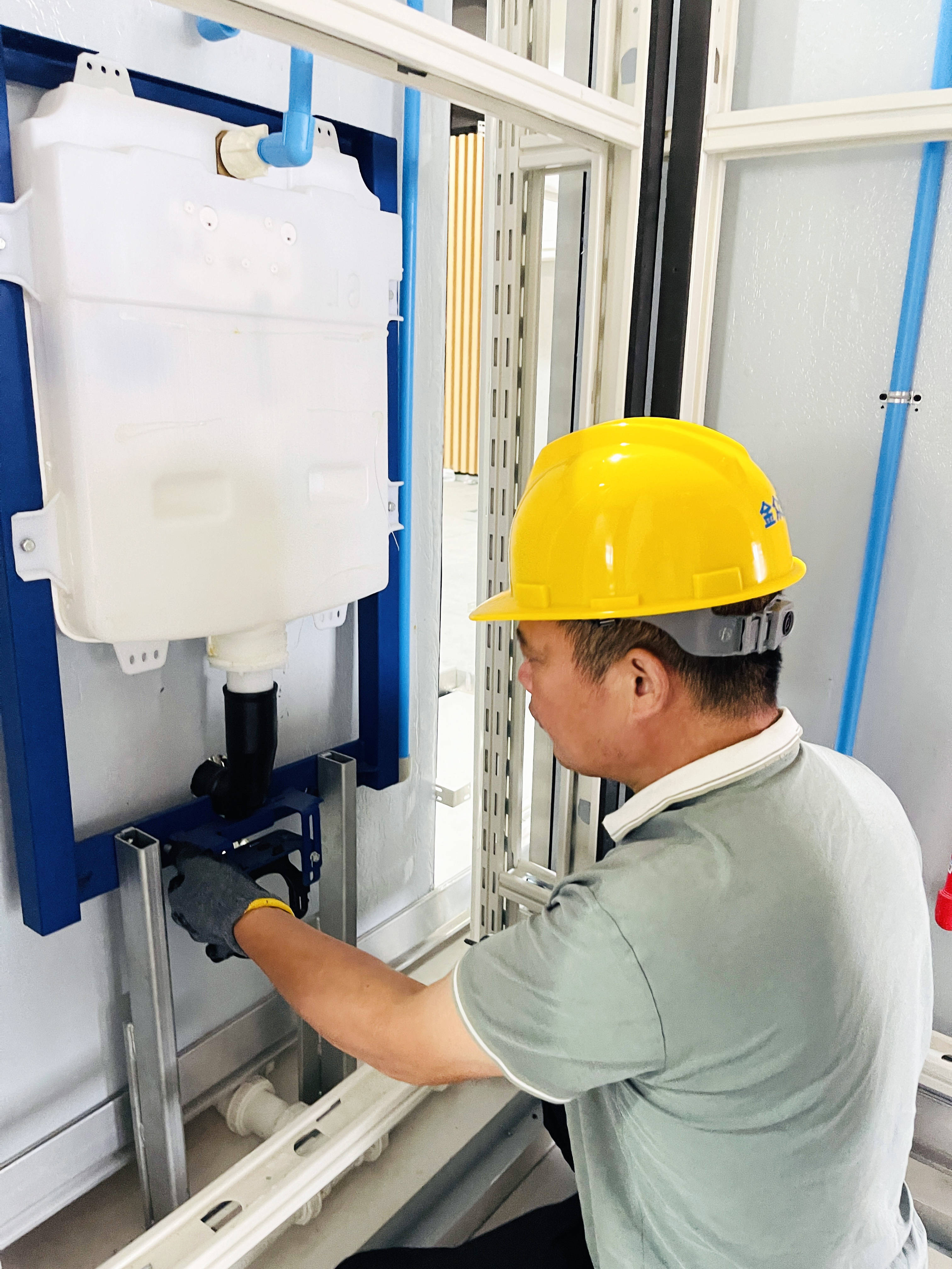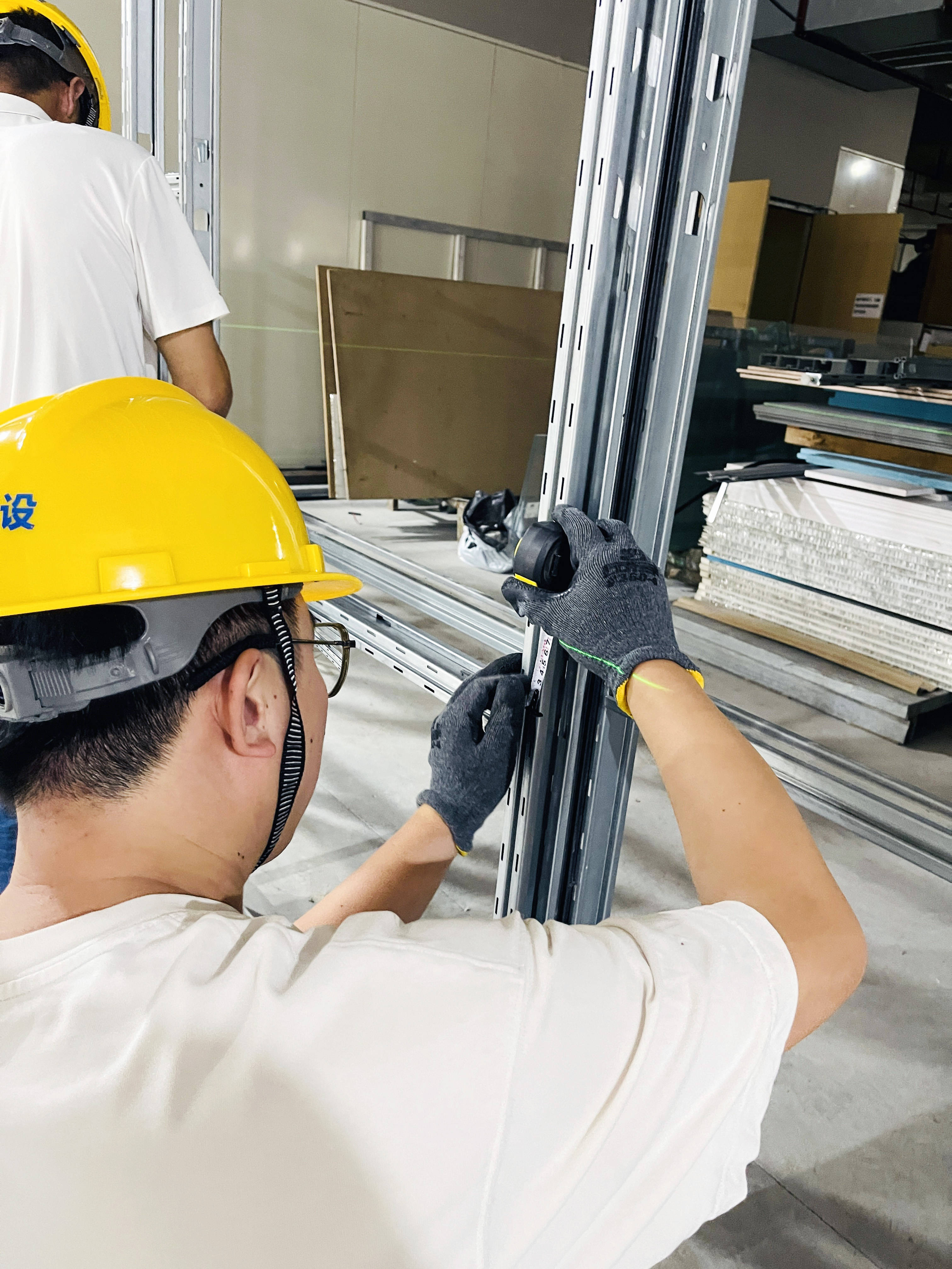 理论授课结束后,汉尔姆专家团队组织实操教学,现场演示装配式装修工具设备的选型、调试与规范使用,重点指导装配式墙体系统与集成卫生间的测量放线、安装技巧,并展示了质量检验与调试方法。学员们认真聆听操作要点,积极动手实践,有效将理论知识转化为实操能力。