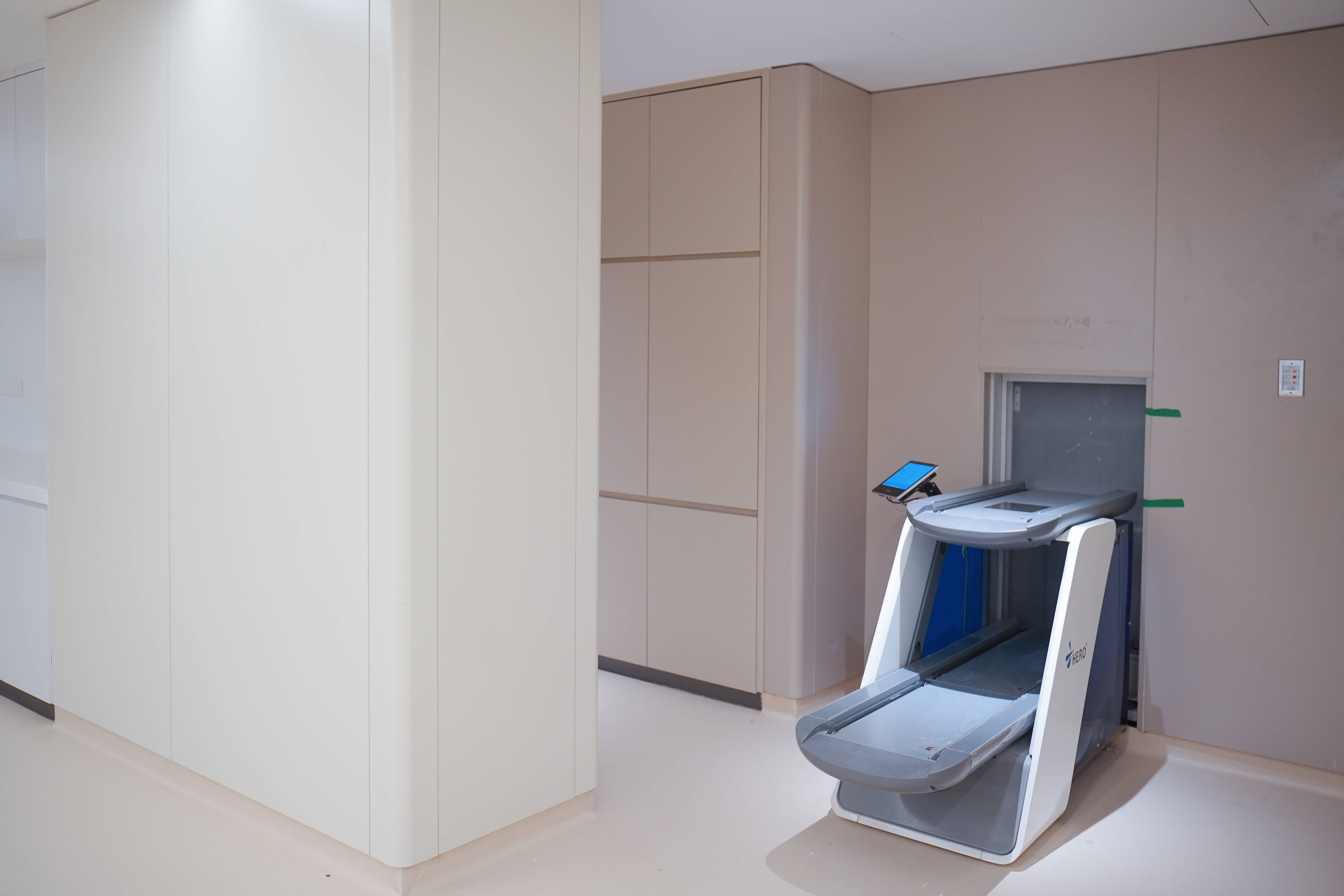 装配式墙体系统将管线和医疗设备被完美隐藏,所有功能被细致整合到一起;柜体、台面、电器一体化安装,一眼望去,空间呈现出整洁的秩序感,创造出一个整洁安宁、放松的休养环境。